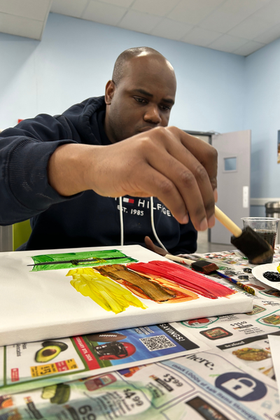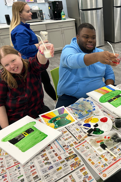 Program participants enjoyed a creative afternoon at a paint and sip event, complete with colorful mocktails and plenty of artistic expression. With brushes in hand and music in the background, everyone had fun painting, relaxing, and spending time together.
