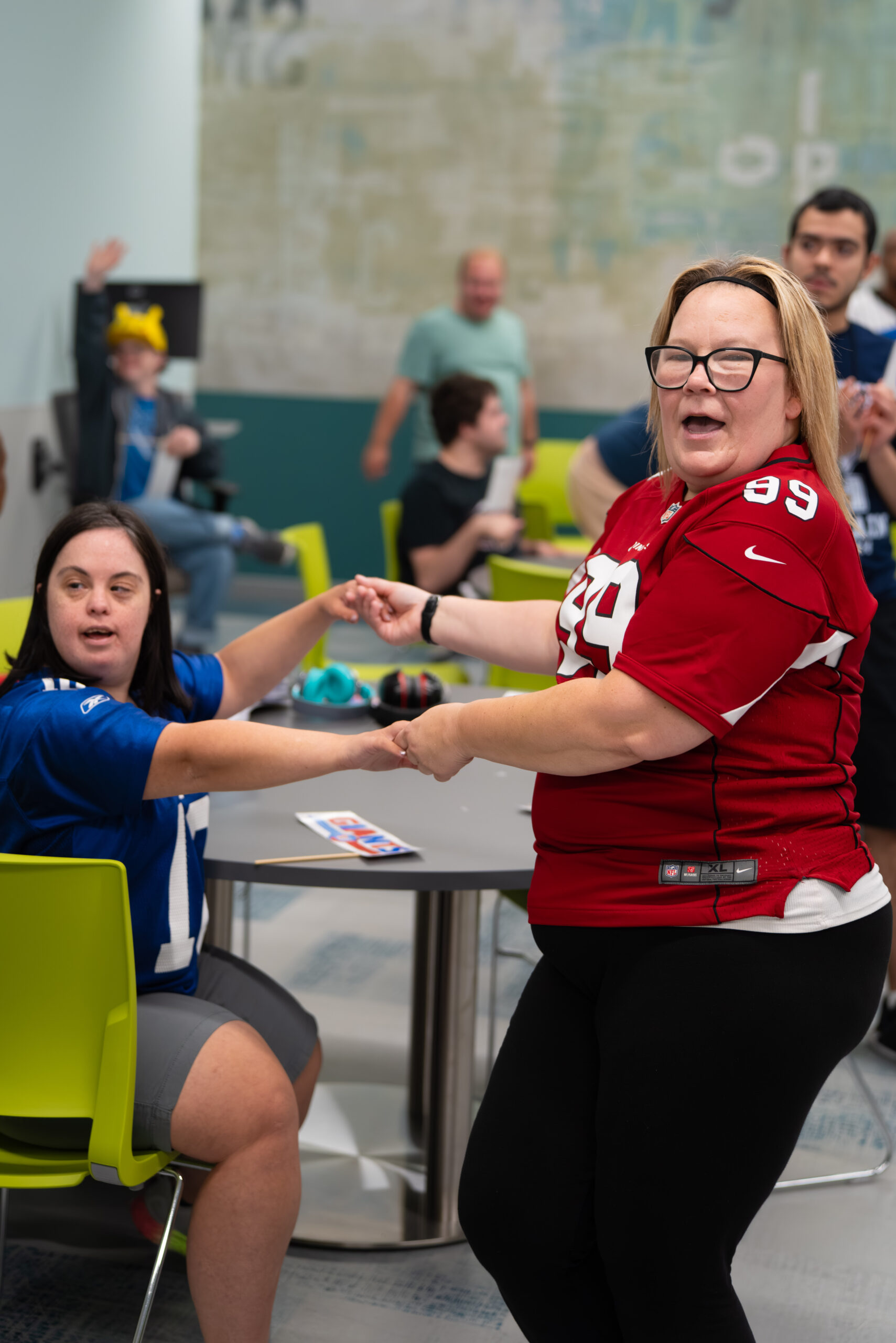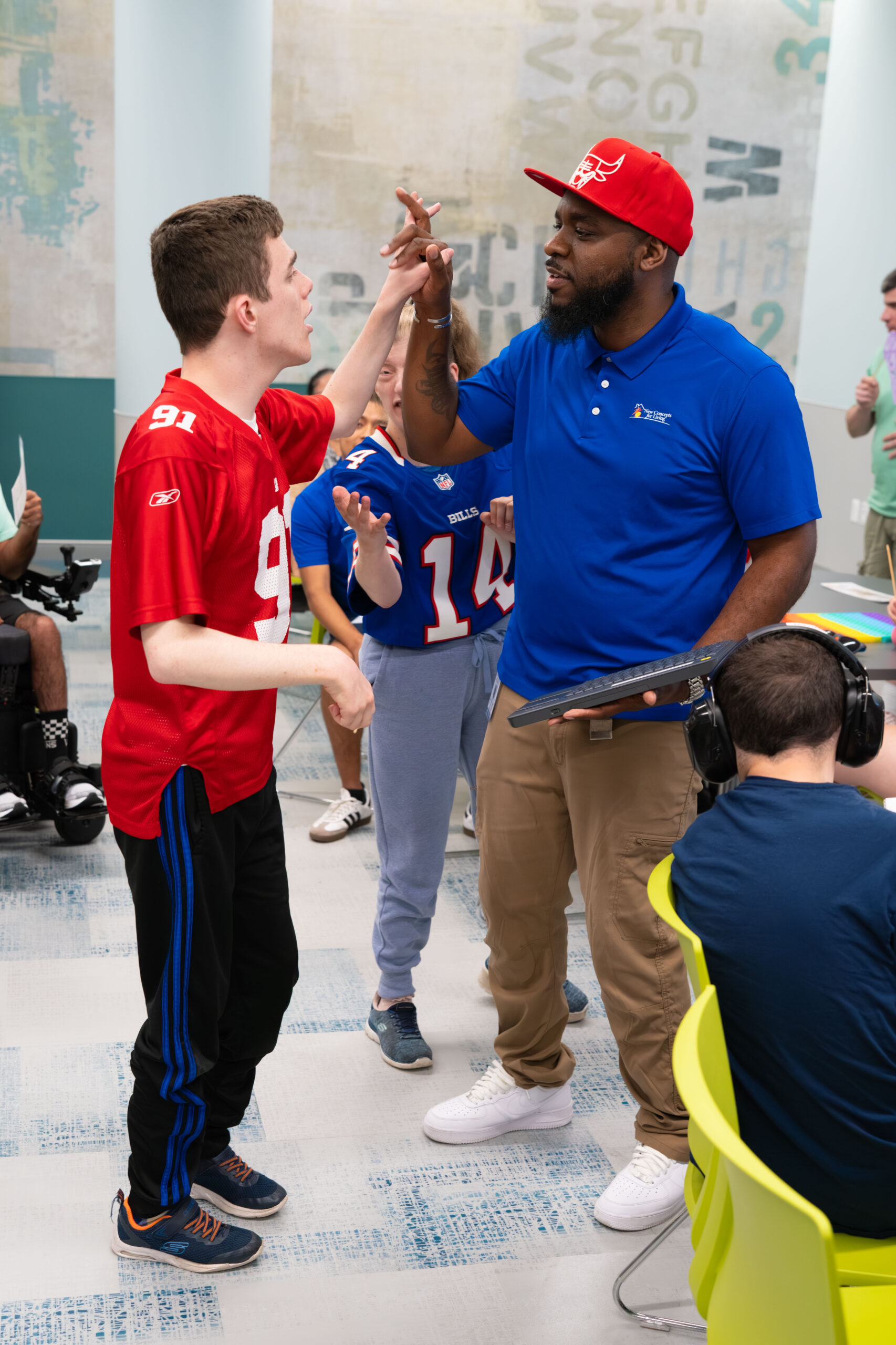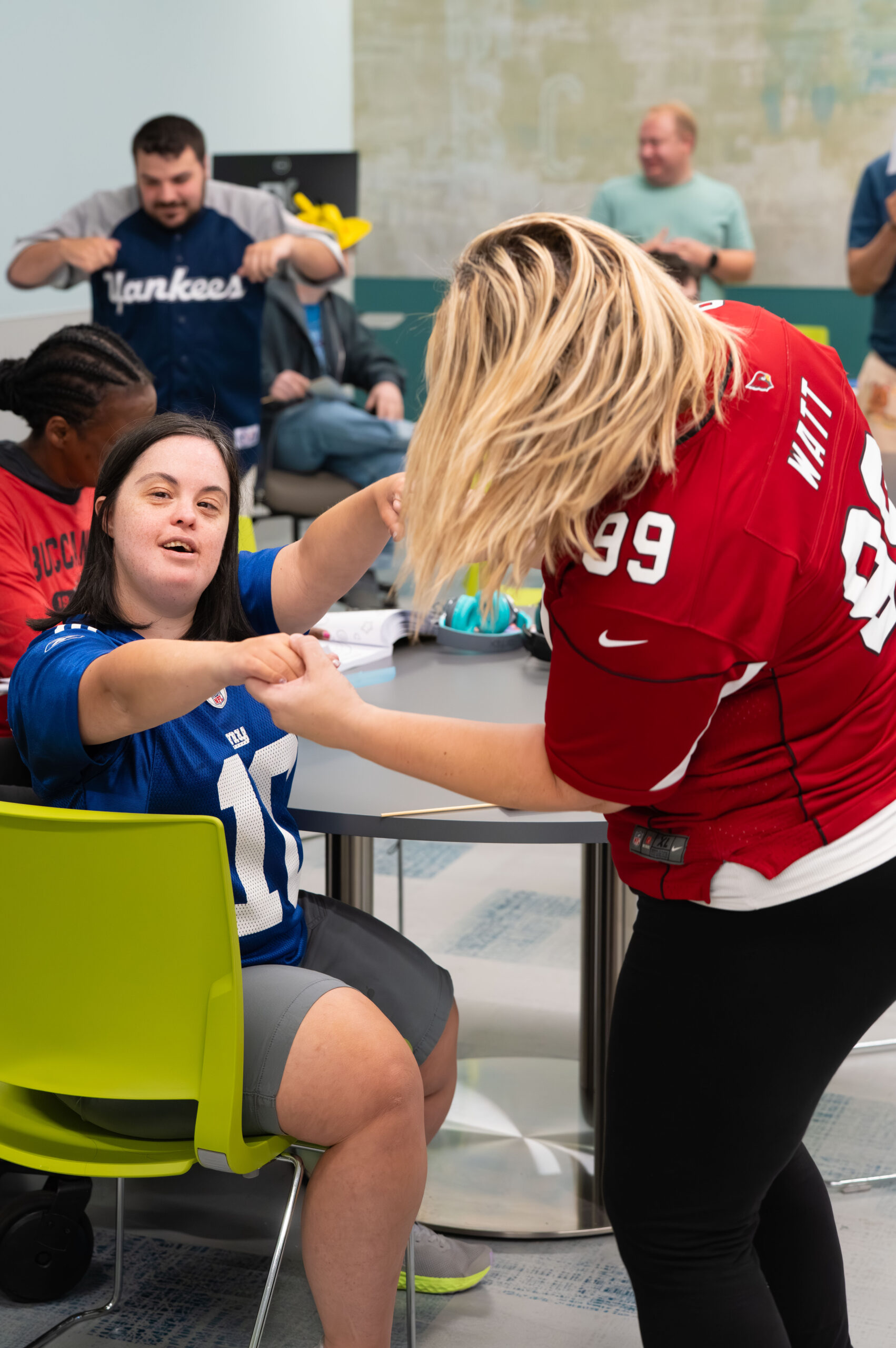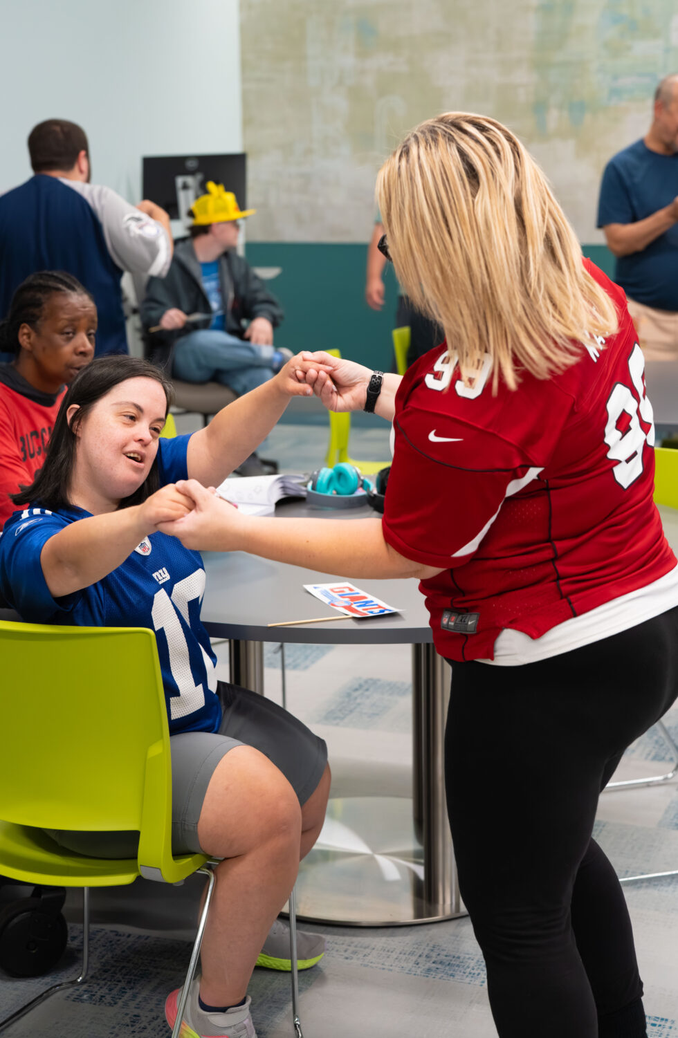 Our extraordinary program participants rep their favorite teams and keep the energy going for Spirit Week at NCFL with Sports Day!